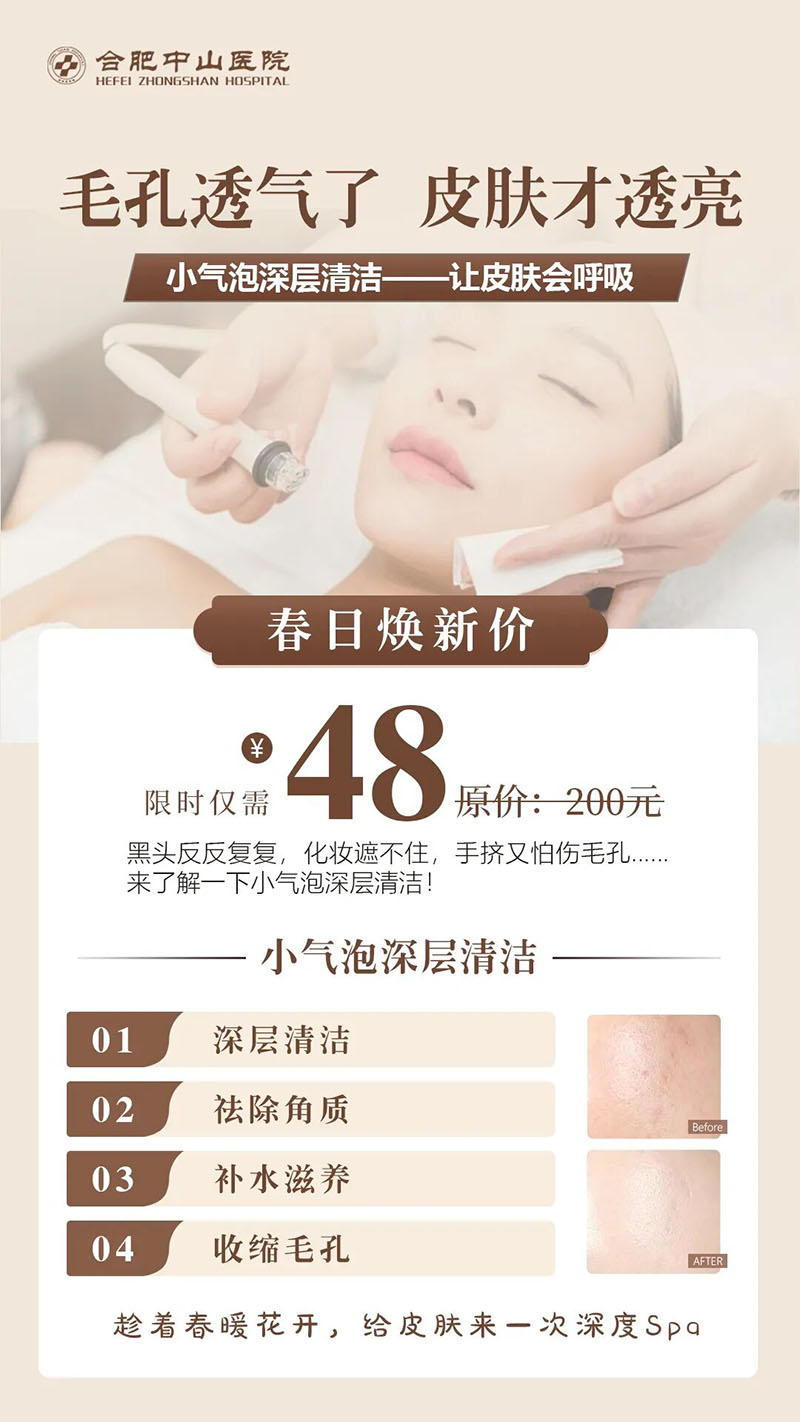 “三分靠护理,七分靠养肤”。真正的“养肤”,始于科学的清洁习惯,我院皮肤科专家建议可搭配专业小气泡护理,使清洁效果提升至肌肤深层。
