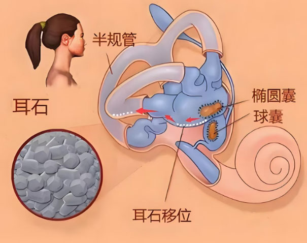 内耳不仅有听觉功能,还蕴含平衡器官,其上附着微小的碳酸钙结晶,俗称‘耳石’。正常情况下,耳石固定原位帮助我们感知重力;一旦脱落进入半规管,便会随头部移动而滚动,刺激神经发送错误信号,从而引发剧烈的天旋地转。