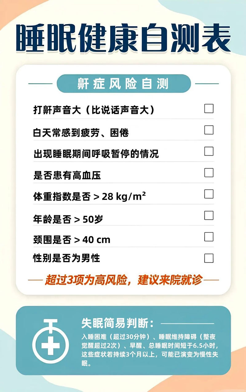 为了帮助大家更好地了解自己的睡眠状况,我们整理了一份快速自测: