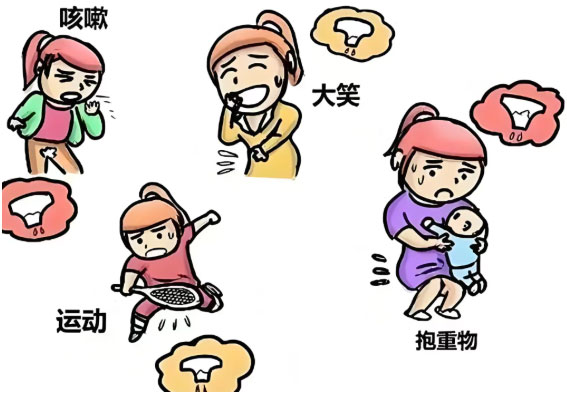 当腹部的压力突然增加时,比如大笑、咳嗽、打喷嚏、提重物或运动,尿液会不自主地从尿道流出。